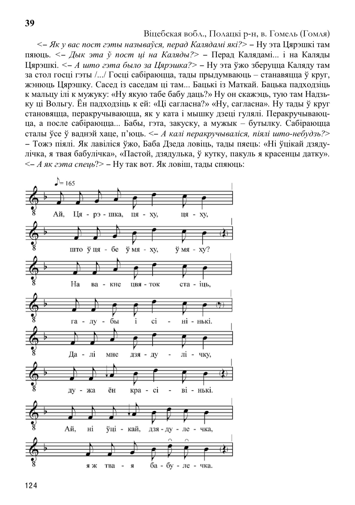 − Тожэ піялі. Як лавіліся ўжо, Баба Дзеда ловіць, тады пяець: «Ні ўцікай дзядулічка, я твая бабулічка», «Пастой, дзядулька, ў кутку, пакуль я красенцы датку».