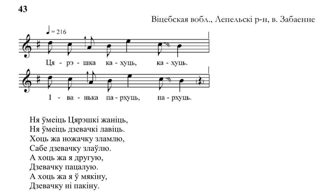 Цярэшка, кахуць, кахуць / песня, тэкст,аўдыё,ноты — в. Забаенне, Лепельскі раён