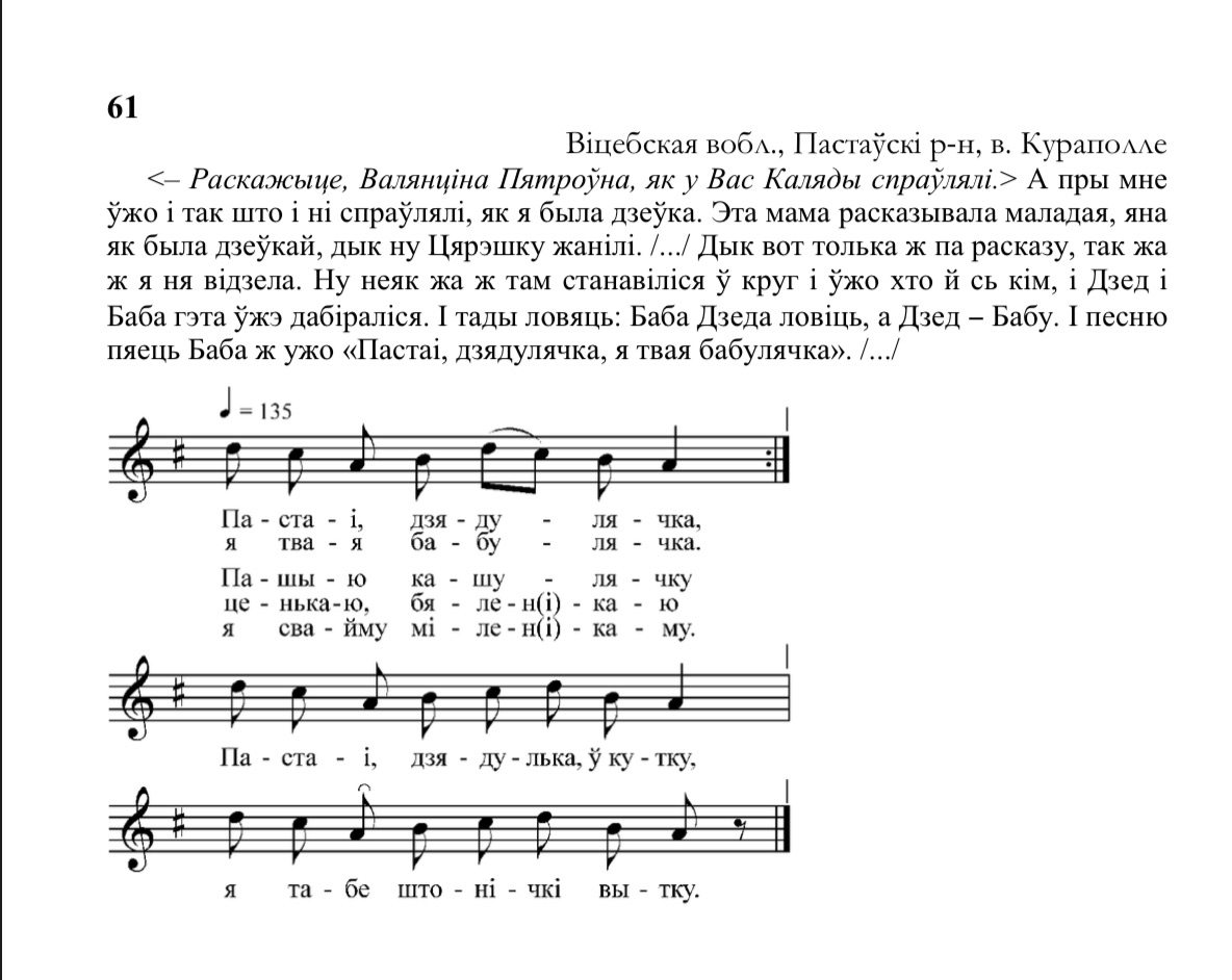 Раскажыце, Валянціна Пятроўна, як у Вас каляды спраўлялі / Пастаі, дзядулячка / песня, тэкст,аўдыё,ноты — в. Кураполле, Пастаўскі раён