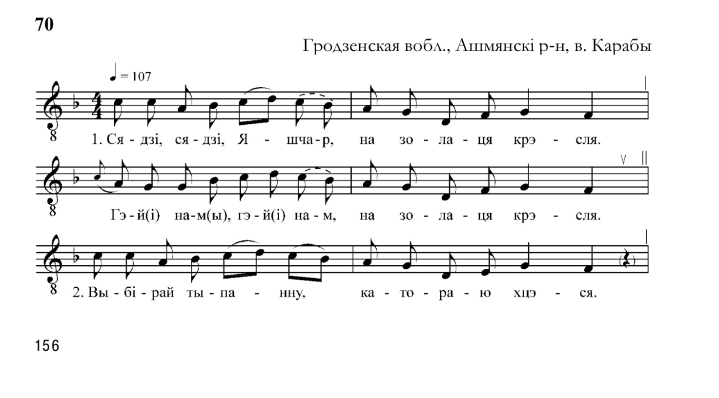 Сядзі, сядзі, Яшчар, на золаця крэсля / песня, тэкст,аўдыё,ноты — в. Карабы, Ашмянскі раён
